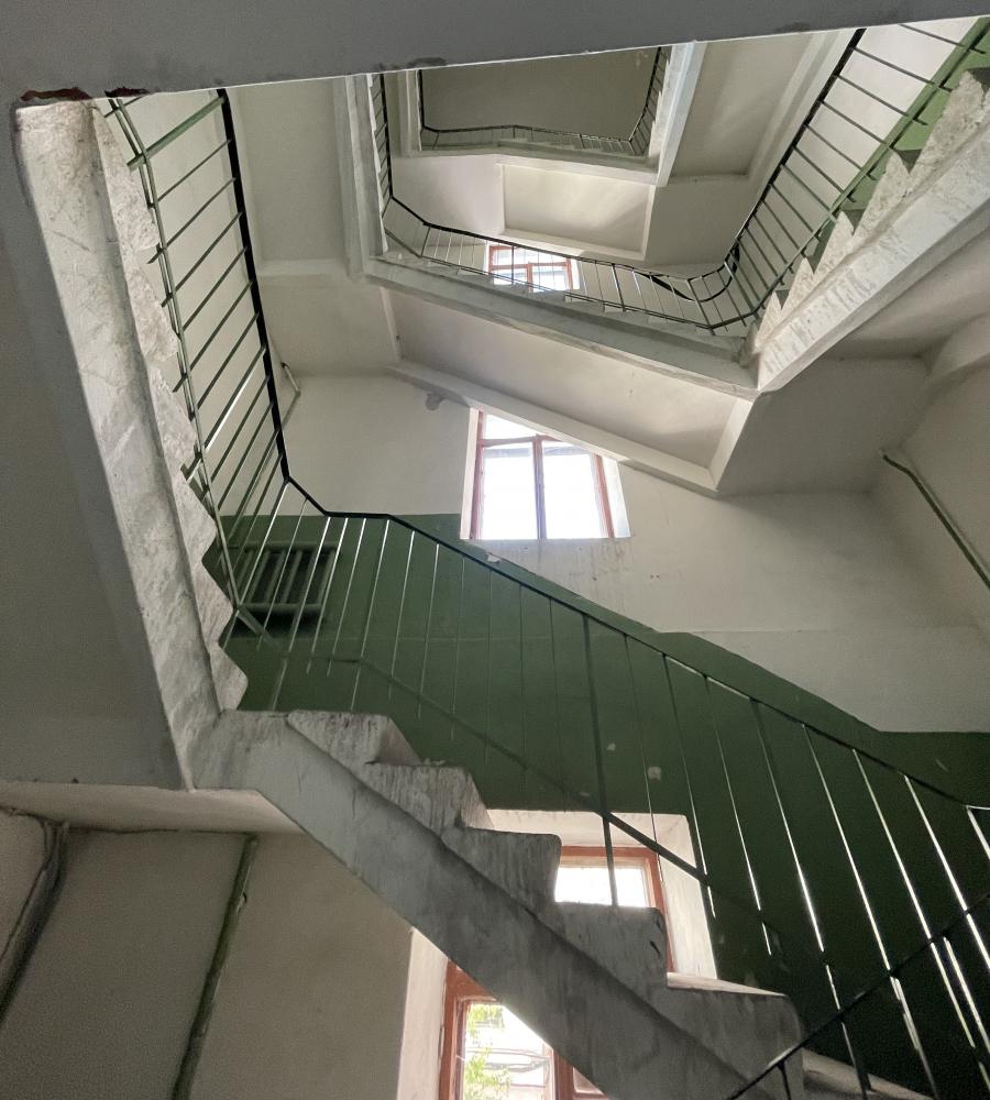 Окна выходят в большой зеленый двор с детской площадкой и парковкой.